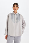 Kutnu Detaylı Smokin Yaka Poplin Gri Gömlek