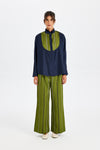 Kutnia’nın modern yorumuyla tasarlanan gri smokin yaka poplin gömlek, ön kısmı %100 özel tasarım kutnu kumaşından, ana bedeni ise rejeneratif pamuk içerikli %100 doğal ve sürdürülebilir poplin kumaştan üretilmiştir. Smokin yaka detayı, patlı ve önden düğmeli tasarımıyla klasik şıklık sunarken, düşük omuz kesimi ve uzun kollarıyla modern bir görünüm kazandırır. Uzun ve yırtmaçlı manşetinde yer alan tek düğme detayı zarif bir dokunuş sağlar. Rahat formu sayesinde konforlu bir kullanım sunan bu gömlek, sonbahar-kış mevsiminde pantolon takımlarıyla kombinlenerek sofistike bir stil oluşturur.