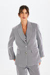 Kutnia’nın sofistike ve zamansız çizgisini yansıtan yeşil blazer ceket, özel tasarım %100 kutnu kumaştan üretilmiştir. Astarlı yapısı, önden iki adet şık ithal düğmesi ve ince vatkalı formu ile güçlü bir siluet kazandırır. Ön kısmında sağ ve solda cepler, iç kısmında ise iki fonksiyonel cep bulunur. Rahat hareket sağlamak için kol uçlarında ve arka yanlarda yırtmaç detayları yer alır. Kol uçlarında bulunan dörder adet şık ithal düğme tasarımı zarif bir şekilde tamamlar. Sonbahar-kış sezonuna uygun olan bu blazer ceket, pantolon ve yelek takımlarıyla kombinlenerek hem iş hayatında hem de özel davetlerde sofistike bir stil yaratır.