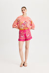 Blue Curve Zeugma Silk Shorts, printed from 100% silk fabric. These Zeugma shorts have an elastic waistband and a comfortable fit. They are trimmed around the legs. Pair them with a shirt and/or blouse for a dynamic summer look. Inspired by the works in the Gaziantep Zeugma Mosaic Museum, they were designed.