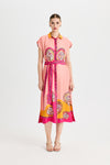 The Blue Curve Zeugma Sleeveless Silk Dress is a specially designed dress crafted from 100% silk fabric. It opens in the front with mother-of-pearl buttons. It features slits on both sides. It has a shirt collar, off-the-shoulder design, and is sleeveless. It features pockets and a portable sash. Its design was inspired by the works in the Gaziantep Zeugma Mosaic Museum.