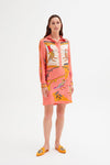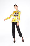 Zeugma green long dress is produced from 100% silk fabric. It has a hidden zipper in the back. It has a open shoulder detail and a slit on the chest, and also, a piping detail around the neck. There is an elastic band around the wrist. It was inspired by the mosaics in Gaziantep Zeugma Mosaic Museum.