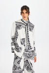 Kutnia’nın kültürel mirası modern tasarımla buluşturduğu zeugma fularlı ipek gömlek, %100 ipek kumaştan üretilmiştir. Gaziantep Zeugma Mozaik Müzesi’nin eşsiz eserlerinden ilham alınarak tasarlanan bu özel parça, sanatsal desenleriyle koleksiyonun ruhunu yansıtır. Dik yakası ve zarif fular detayı tasarıma sofistike bir görünüm kazandırırken, uzun manşetleri modern bir siluet oluşturur. Ön patta ve manşetlerde kullanılan sedef düğmeler, ince işçilikle bütünleşir. Pantolon takımlarıyla kombinlenebilen bu gömlek, hem gündelik şıklıkta hem de özel davetlerde zamansız ve özgün bir stil sunar.