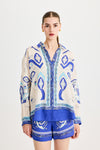 Pembe Kıvrım Zeugma Oversize Keten Gömlek, %100 keten kumaştan üretilmiştir. Zeugma temalı özel baskısıyla dikkat çeken bu gömlek, oversize formu sayesinde modern ve rahat bir silüet sunar. Ön kısmı sedef düğmelerle açılırken, gizli pat ve manşetlerdeki düğme detaylarıyla şıklık kazanır. Etek ucu kavisli formdadır. Tasarımı, Gaziantep Zeugma Mozaik Müzesi’ndeki eserlerden ilham alınarak hazırlanmıştır.