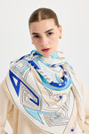Pembe Kıvrım Zeugma İpek Şal, %100 ipek kumaştan üretilmiş özel tasarım bir şaldır. Gaziantep Zeugma Mozaik Müzesi’ndeki eserlerden ilham alınarak tasarlanmıştır.